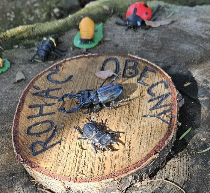 Hmyzí domeček pak slouží nejen jako úkryt pro drobné pomocníky přírody – včely samotářky, berušky i další hmyz – ale také k naší každoroční podzimní akci Uspávání broučků. Společně se tam symbolicky loučíme s létem a připravujeme přírodu na zimní odpočinek.