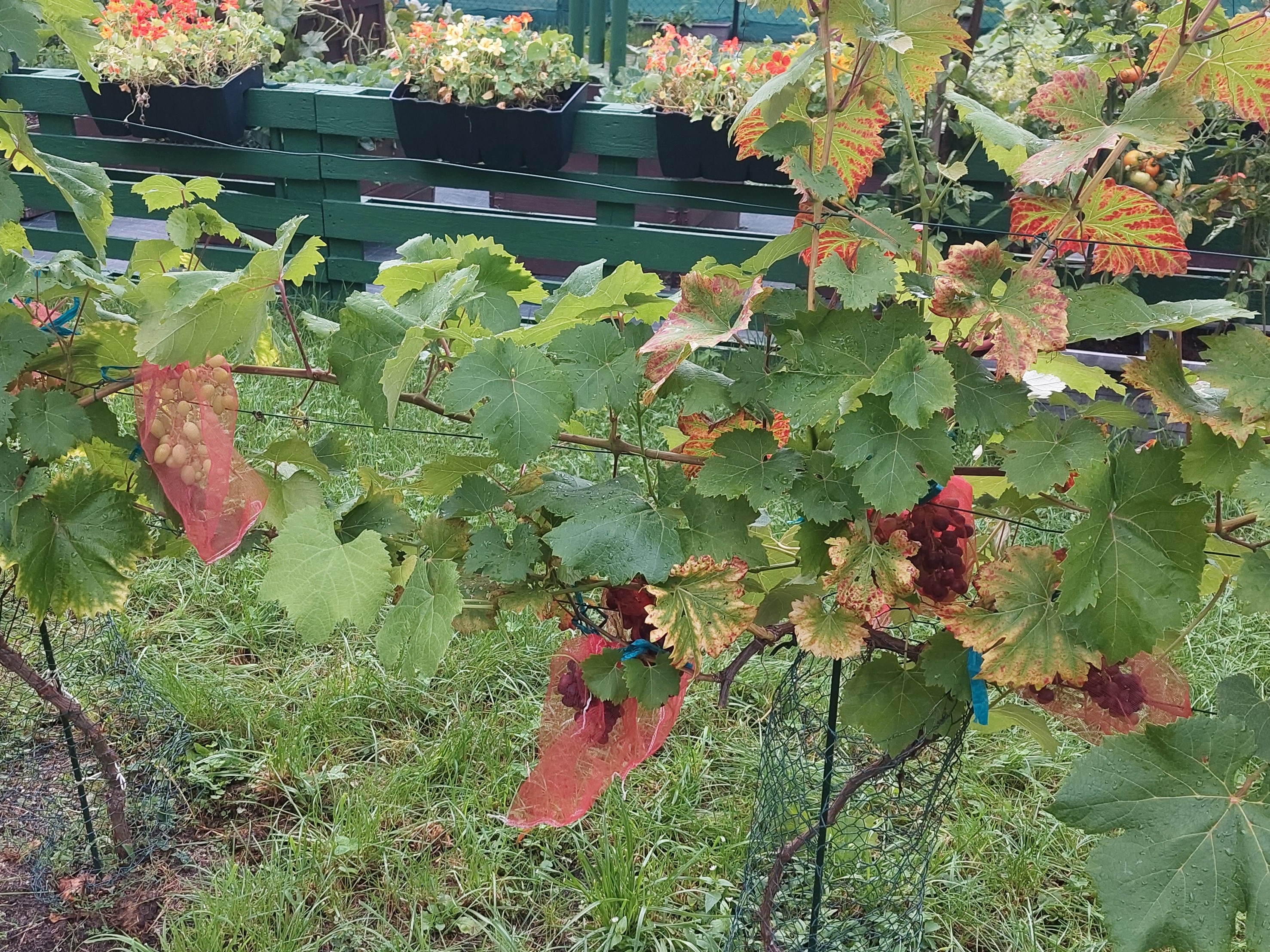 Réva je vysazena postupně od chodníku a zahrnuje modré i bílé odrůdy.