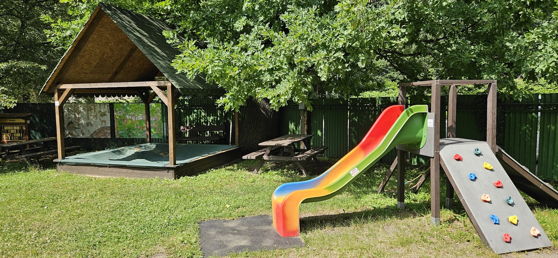 Kryté pískoviště zve k tvoření hradů i tajných tunelů za každého počasí. Klouzačka Guliver láká na pořádně dlouhou jízdu dolů. Hopupačky rozhýbou malé i větší návštěvníky a fitness prvky nabízi výzvu pro silné ruce i odvážné lezce.