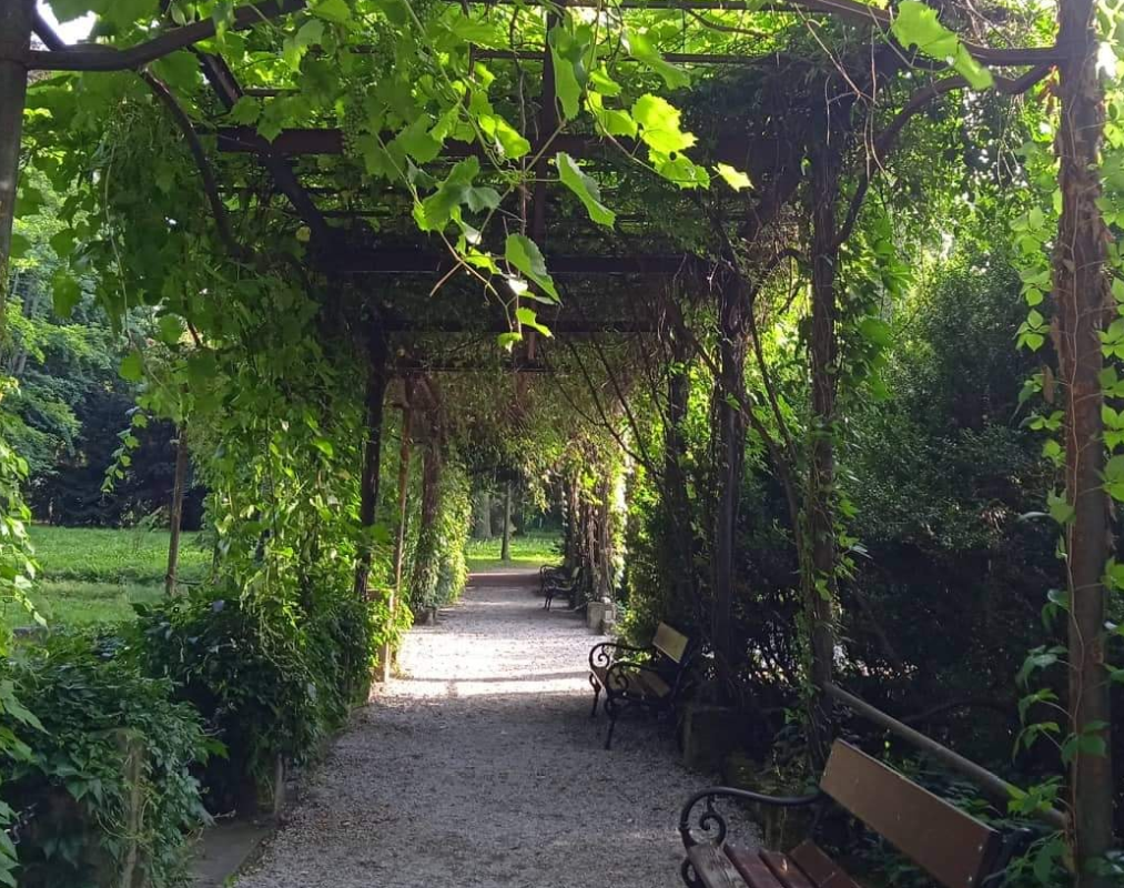 Pergola je jedním z nejromantičtějších míst v areálu parku. Zelené popínavé rostliny, klidné prostředí a výhled do přírody vytvářejí přirozenou kulisu, která působí intimně a slavnostně zároveň. Je porostlá popínavou zelení včetně červené vinné révy Baco Noir (často lidově nazývané „Bago“), která vytváří přirozenou zelenou střechu, příjemný stín a romantickou atmosféru.