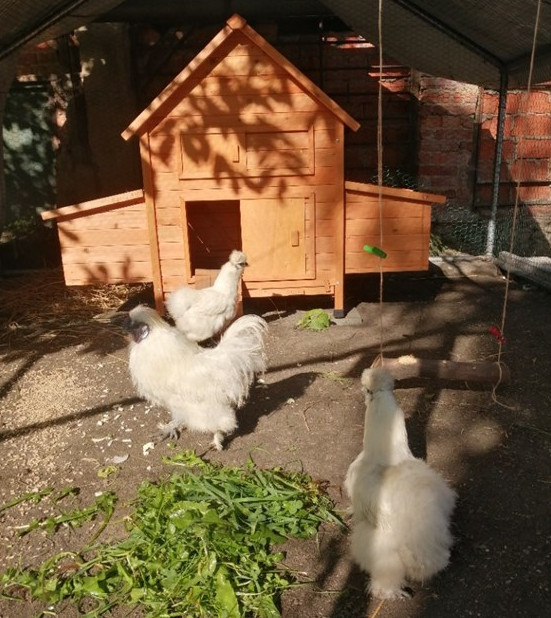 Naše Faunaparkové hedvábničky zdrobnělé jsou již v seniorském věku. Mají více než dest let. Z původního hejna čtyř slepiček a kohoutka nám zůstala poslední slepička.